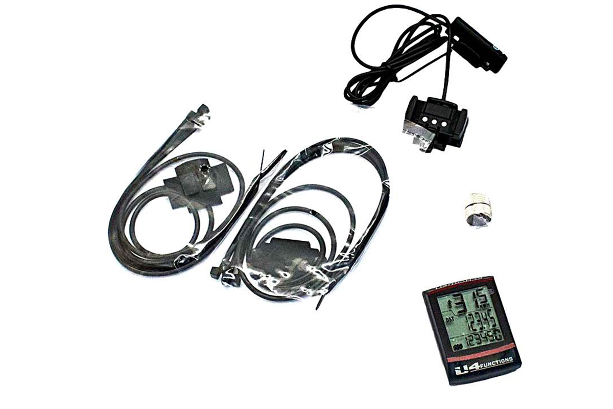 Недорогой велокомпьютер с 4-я функциями: текущая скорость, средняя скорость, текущая пройденная дистанция, общая пройденная дистанция, часы